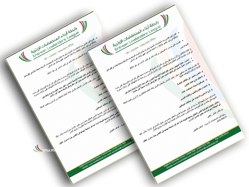 البيان الختامي لاجتماع الجمعية العمومية لرابطة أبناء المنخفضات الإرترية 22 أبريل و 6 مايو 2023 م